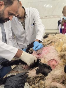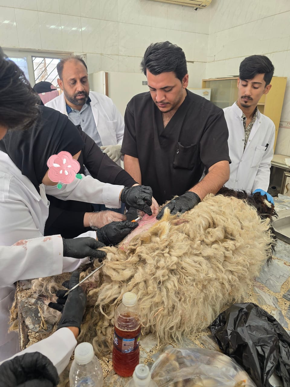 تمثلت الحالة الأولى في نعجة تعرضت لجروح متعددة في أنحاء الجسم، إذ تم التعامل معها من قبل م.م. حيدر جابر وطلبة المرحلة الخامسة، حيث جرى تعقيم الجروح بشكل كامل وخياطتها، إضافةً إلى إعطاء المضادات الحيوية والعلاجات اللازمة لضمان التئام الجروح وشفاء الحيوان بشكل تام.
