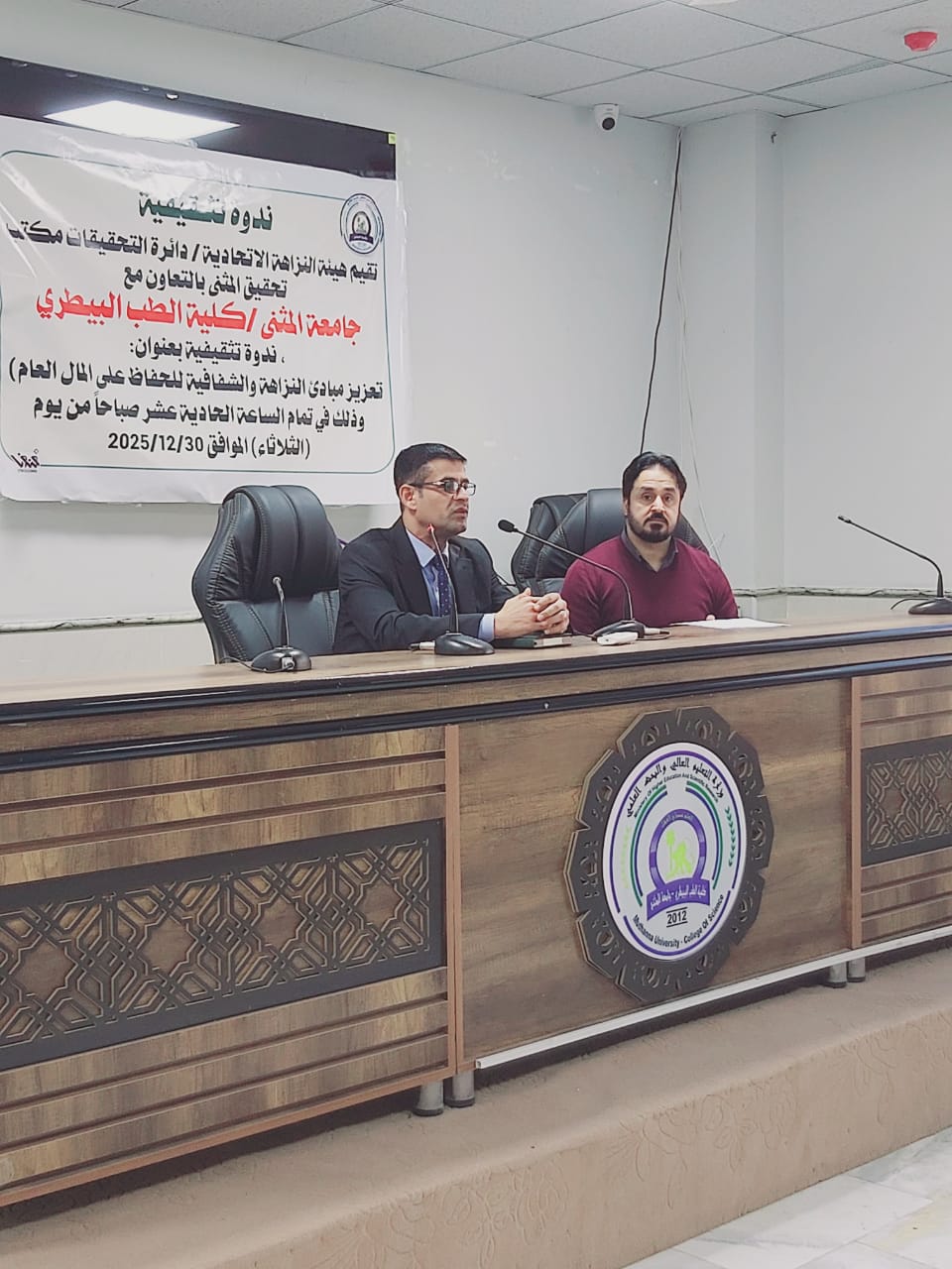 2 يناير,2026ضمن إطار تعزيز قيم ومفاهيم النزاهة، نظّمت هيئة النزاهة/دائرة التحقيقات/مكتب تحقيق المثنى، وبالتعاون مع جامعة المثنى، ندوة تثقيفية أُقيمت على قاعة كلية الطب البيطري، استهدفت طلبة الجامعة، وذلك ضمن مبادرة تهدف إلى نشر الوعي وترسيخ السلوك القويم في المجتمع الأكاديمي.
