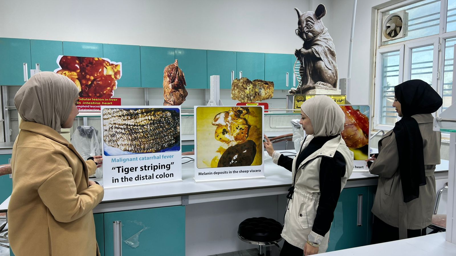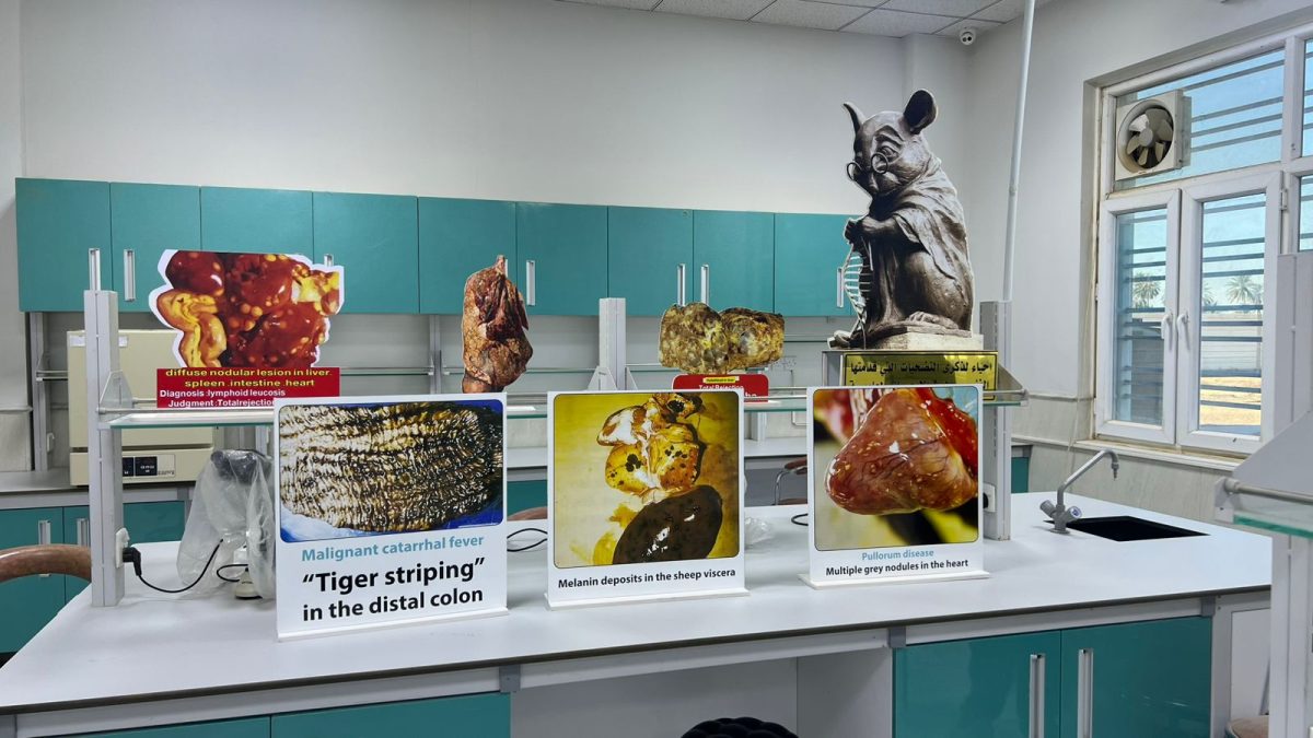 5 يناير,2026ضمن نشاطات كلية الطب البيطري – فرع الصحة العامة، قام مجموعة من طلبة المرحلة الخامسة، وبإشراف الأستاذ المساعد الدكتور موسى محمد علي، بتنفيذ مجسمات تعليمية متخصصة تُجسِّد أبرز الحالات المرضية المرتبطة بصحة اللحوم.