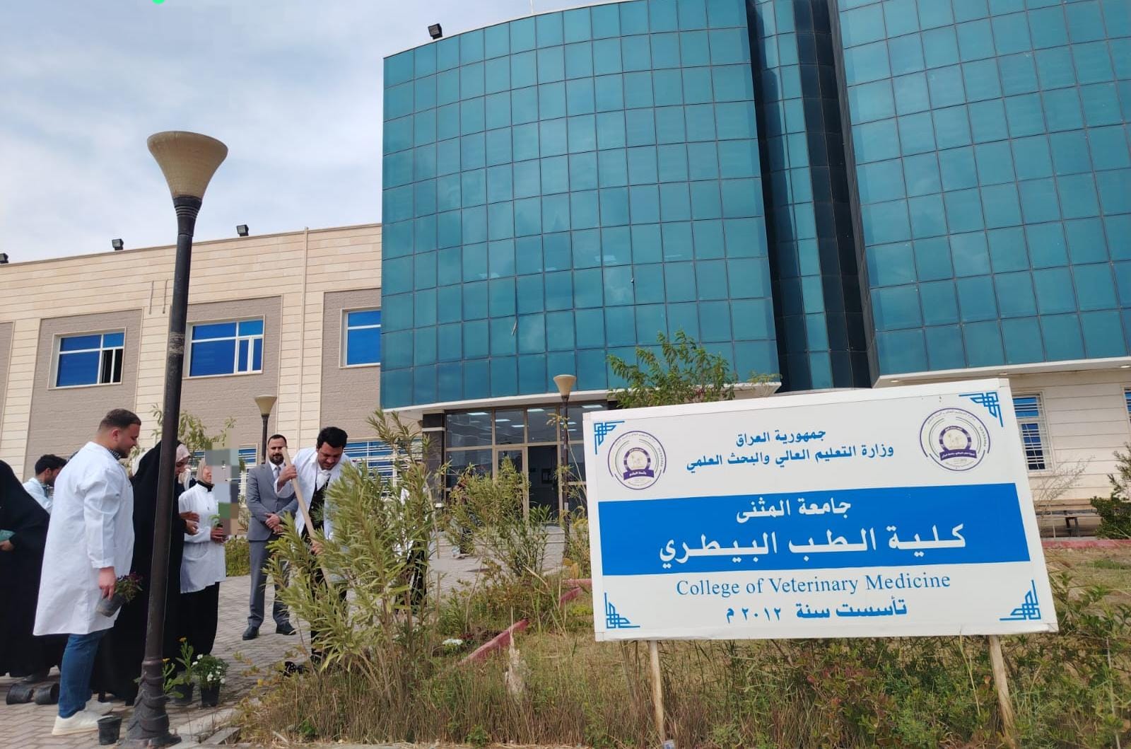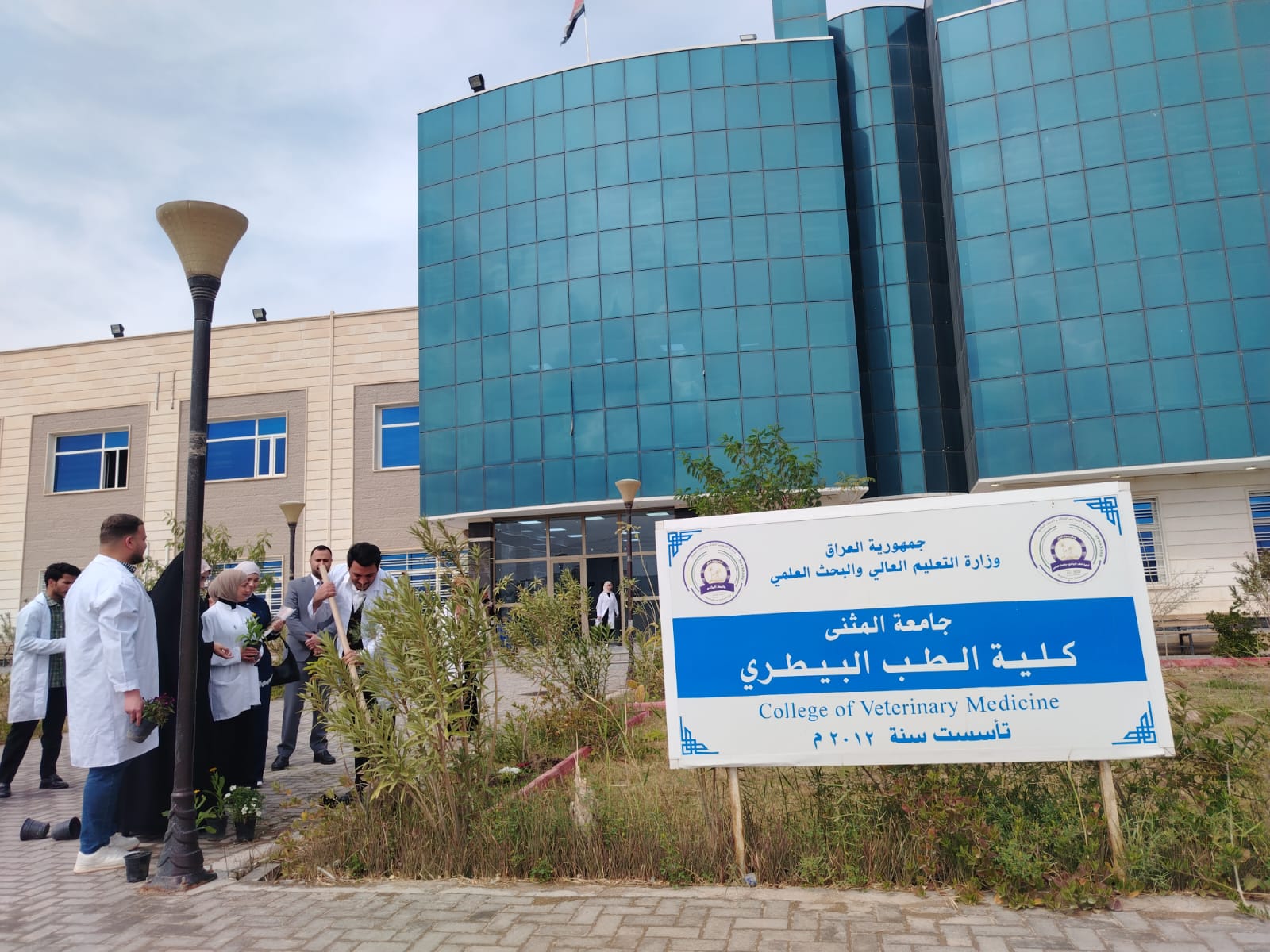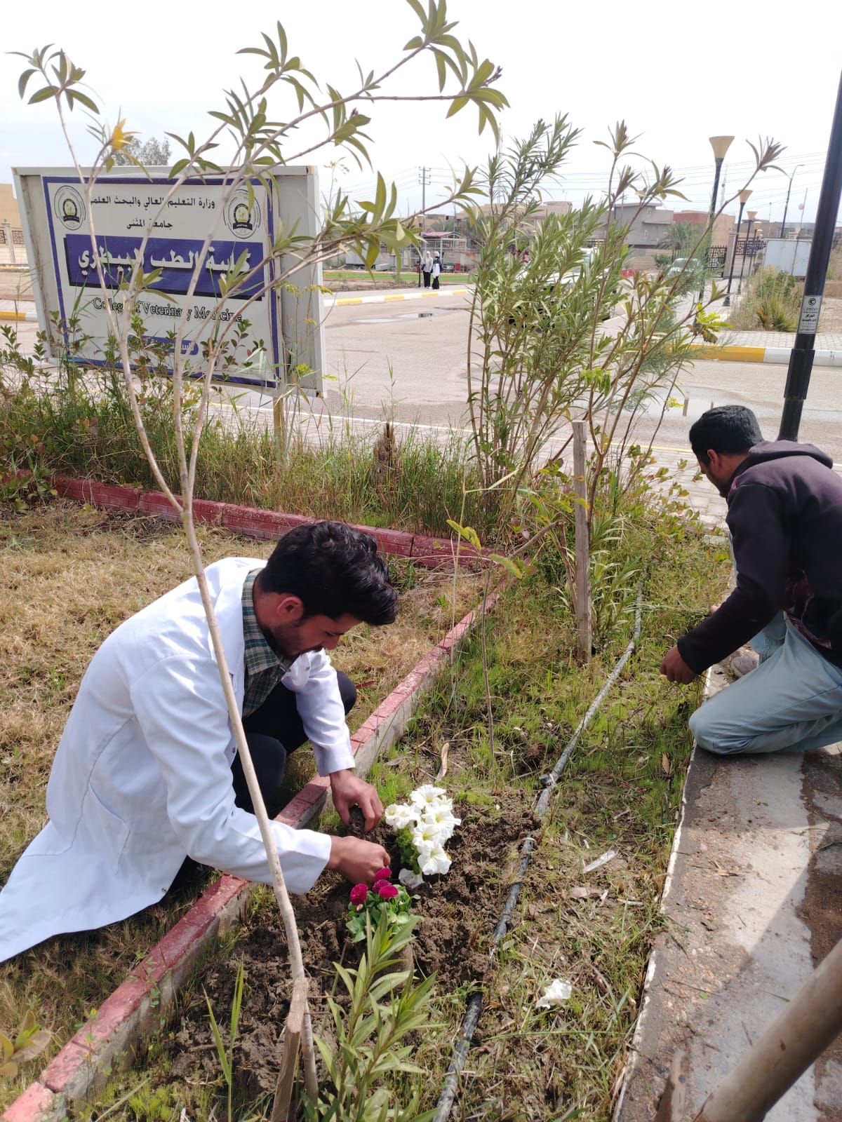 19 مارس,2026برعاية السيد عميد كلية الطب البيطري المحترم الأستاذ المساعد الدكتور محمد كريم حمد المحترم، وبمتابعة مباشرة من قبل السيد معاون العميد للشؤون الإدارية والمالية ، نظمت كلية الطب البيطري فعالية في كليتنا ضمن يوم التشجير الوطني تمثلت بإقامة حملة تشجير داخل الحرم الجامعي، شارك فيها عدد من منتسبي الكلية والطلبة، بهدف ترسيخ الوعي البيئي وتعزيز الاهتمام بالمساحات الخضراء.