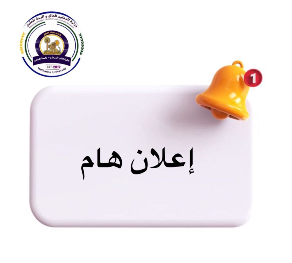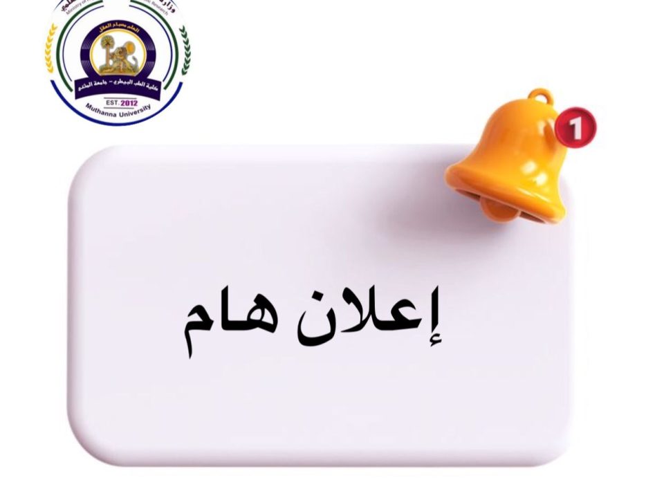 تُعلن كلية الطب البيطري – جامعة المثنى عن بدء مرحلة التسجيل الورقي للطلبة المقبولين للعام الدراسي (2026–2027)، وعلى الطلبة الأعزاء مراجعة شعبة التسجيل في الكلية خلال […]